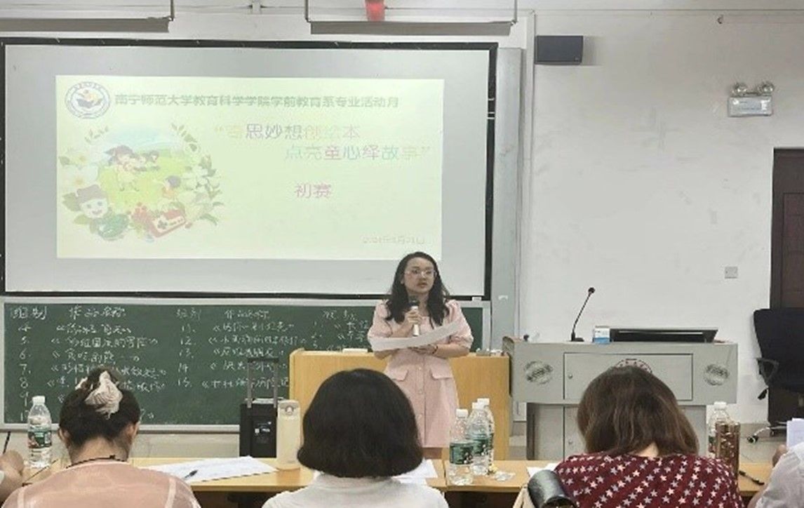 2024年学前教育专业活动月“奇思妙想创绘本,点亮童心绎故事”学前儿童绘本创编、演绎比赛活动竞赛于五合文综915举行,学前教育系副主任张媛、王晓军和李新园老师等嘉宾及评委老师莅临比赛现场进行指导。
