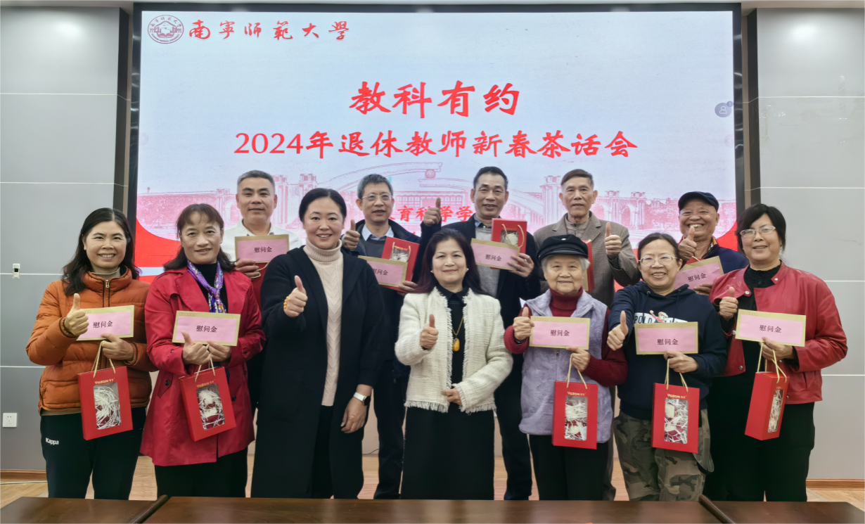1月5日在五合校区举行2024年“教科有约”退休教职工新春茶话会。学院党委书记庞芳、院长李强、副书记谢珊和辅导员梁精泉、周敏波以及李月英、赖国强等10位退休教职工参加了茶话会。会议由学院党委副书记谢珊主持。