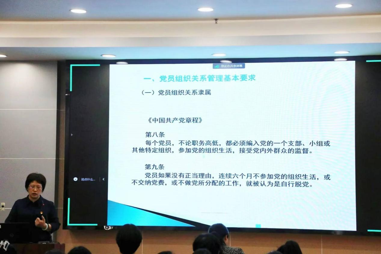学院党委副书记谢珊老师、辅导员郭恒老师莅临大会现场。会议伊始,谢珊老师对毕业生党员进行了离校教育,从平安离校、文明离校、诚信离校和坚定信念四个方面对毕业生党员们进行了嘱托,并给予其诚挚的寄语。接着,由郭恒老师担任主讲人,为毕业生党员们进行党员组织关系转移工作的讲解。在讲解过程中,郭恒老师首先强调了党员组织关系管理的基本要求,随后详细讲述了2024届毕业生党员组织转移的具体要求,内容涵盖组织关系转移去向、组织关系转移方式、工作进度安排等多个环节,并通过详细介绍和图文并茂的方式,确保每一位毕业生党员都能全面掌握。