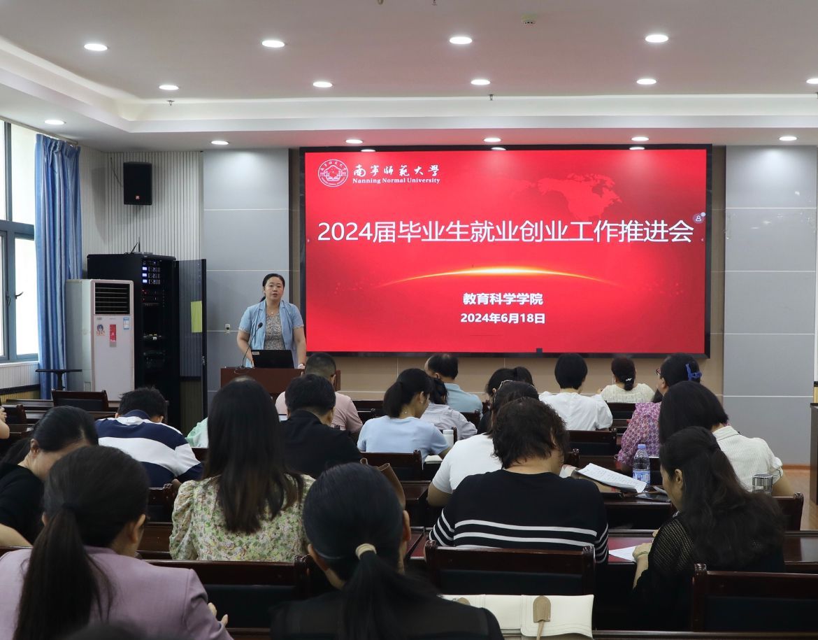 于6月18日在五合理综楼1003室召开2024届毕业生就业创业工作推进会,这是学院今年第3次召开的就业创业工作推进会,学院党政班子和全体教职工参加会议。会议由学院党委副书记谢珊主持。