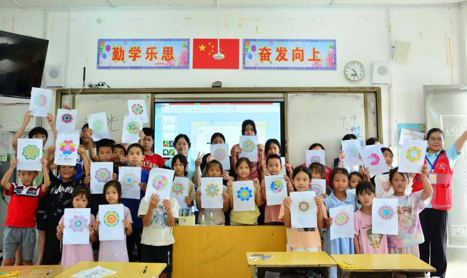 值得一提的是,支教团队还特别注重心理健康教育的渗透。在心理健康课堂上,支教老师们通过心理信箱、心理团辅等形式,引导孩子们正确认识自我,学会处理人际关系,培养积极向上的心态。此外,支教团队还开展了“曼陀罗绘画课”,通过绘画的方式帮助孩子们表达情感、释放压力,有效促进了他们的情感表达与创造力发展。
