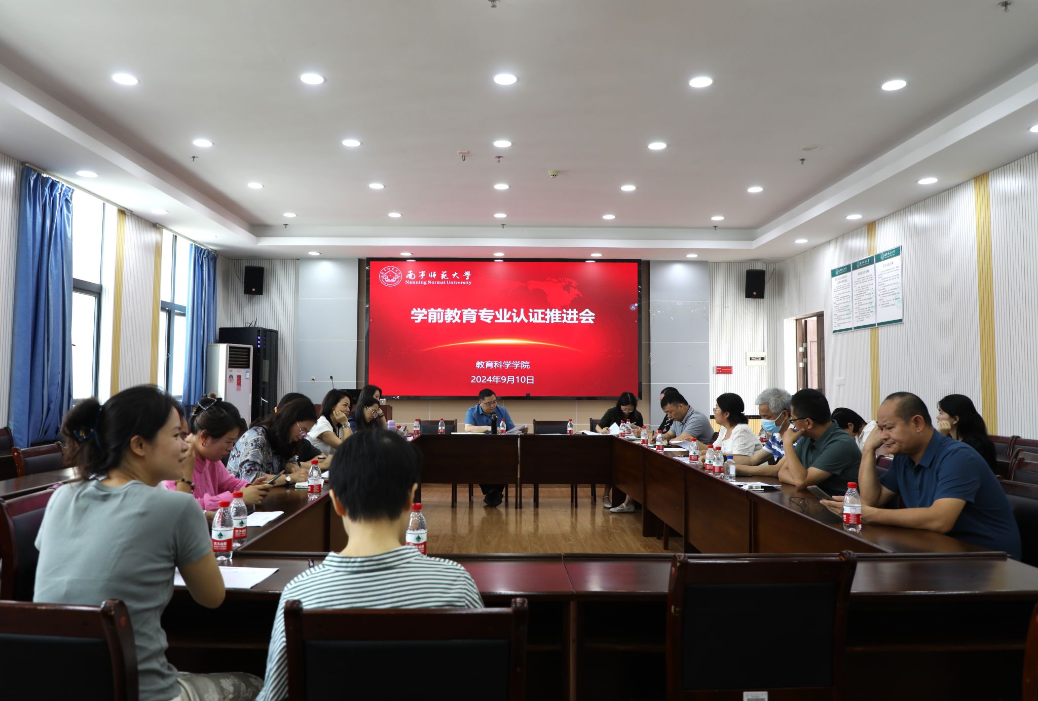 在五合校区理综楼1003室召开学前教育师范专业认证推进会。推进会由学院副院长张瑞主持,学院领导班子成员、学前教育系全体教师及教学秘书等参加会议。