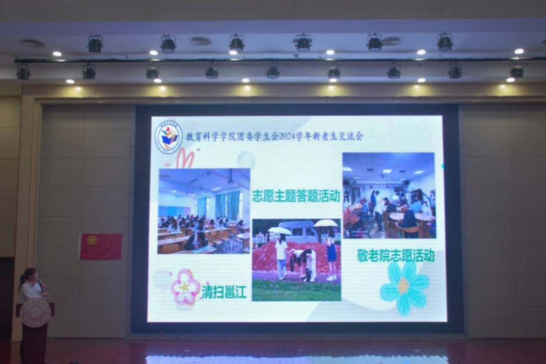 会议伊始,主持人代表学院向新生表示热烈的欢迎,掌声过后,教科院团委学生会的代表们上台向新生们展示了各部门的独特魅力,鼓励他们加入,以此在大学生活中成就更好的自己。接着有趣的互动环节开始了,通过凭歌词猜歌名的游戏,拉近了新老生的距离,交流愈加自然融洽。最后,在新老生自由走动交流的过程中,本次会议也落下了帷幕。