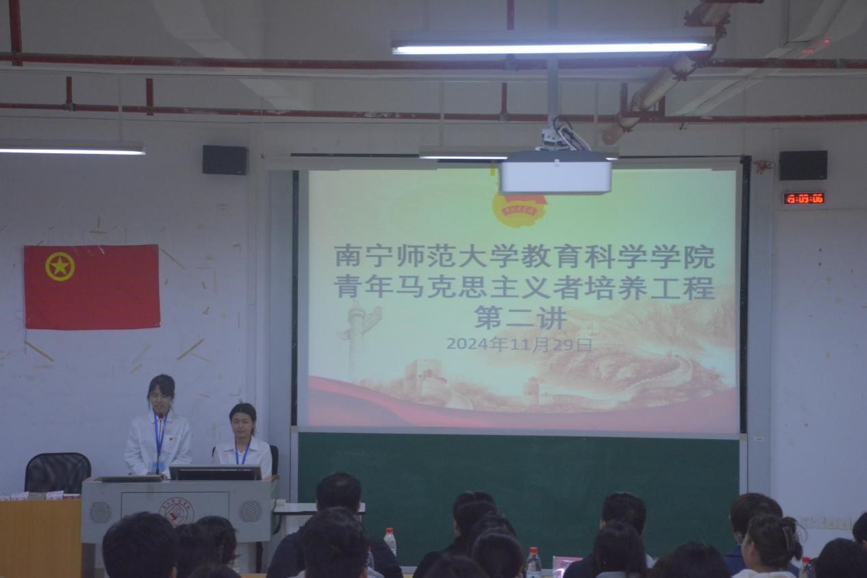 团委于11月29日晚在文综楼801教室开展青年马克思主义者培养工程第二讲。