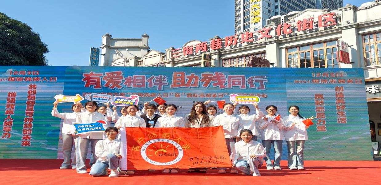 阳光特教社与广西云彩社会工作服务中心携手于12月1日在南宁市三街两巷中华大剧院广场前共同举办了“有爱相伴,助残同行”主题宣传活动。