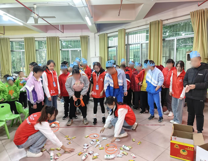 的20名志愿者带来的精彩手语舞《小美满》和合唱《仰望星空》表演。到了分蛋糕环节,喜悦的掌声响起来,切蛋糕不仅意味着祝贺生日,也代表了一个集体和友情的和谐状态。随后,一系列套圈、投掷乒乓球趣味小游戏环节将活动推向高潮。志愿者们耐心地指导孩子们参与游戏,帮助他们克服困难,享受游戏的乐趣。孩子们的笑声此起彼伏,整个会场充满了欢声笑语,大家共同度过一个美好难忘的下午。