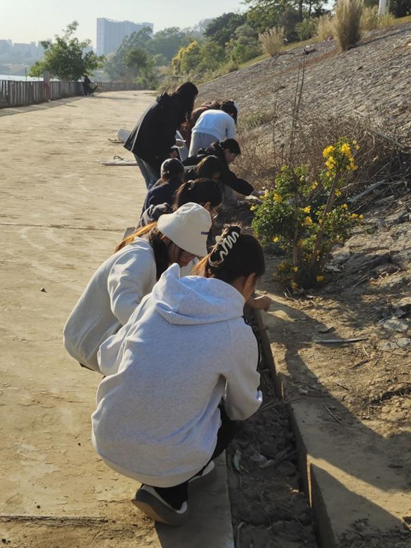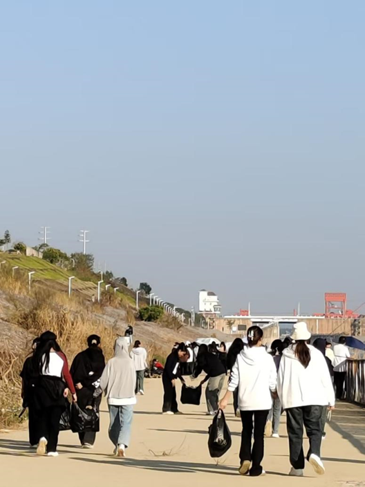 当天,志愿者们有序到达邕江边,在各小组组长的安排下,有序地领取清扫工具后,便迫不及待地开始了清扫工作了。6个小组分别行动,沿着邕江清扫。志愿者们认真地寻找着藏在隐蔽处的垃圾,不放过任一小小的垃圾,还大自然一条干净的邕江。志愿者们将志愿精神牢记于心,以行动弘扬志愿服务精神,传递环保正能量,塑造文明和谐的社会新风尚。最后,志愿者们将一袋袋的垃圾扔进垃圾桶,满怀笑意地踏入归途。