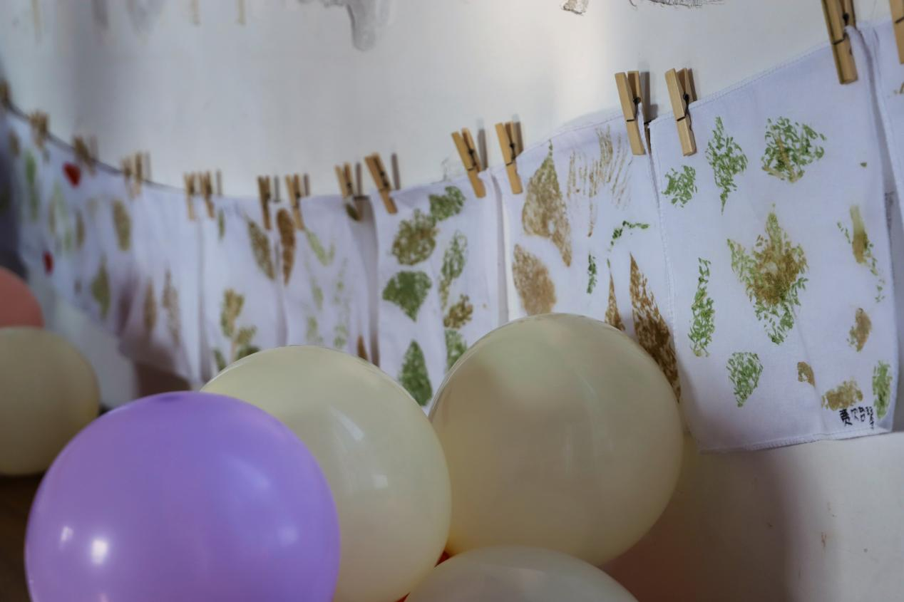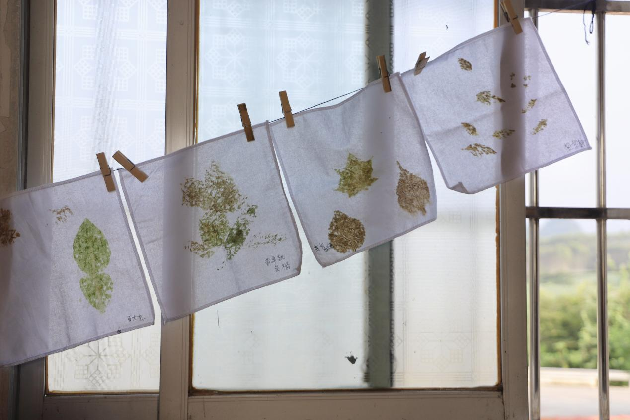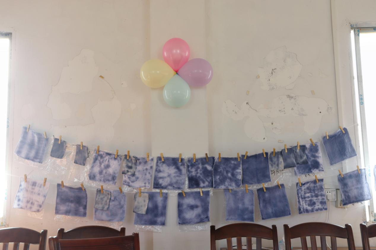 “情暖童心护成长,爱润乡土助振兴”社会实践团在罗城仫佬族自治县龙岸镇天宝村开展的暑期夏令营活动迎来圆满结课。天刚蒙蒙亮,志愿者老师们就已经忙碌起来——他们细心地将同学们在夏令营里完成的扎染手帕、锤草印花布等作品一一悬挂、摆放,原本朴素的教室瞬间被斑斓色彩填满,成了充满童趣的 “小小展览馆”。