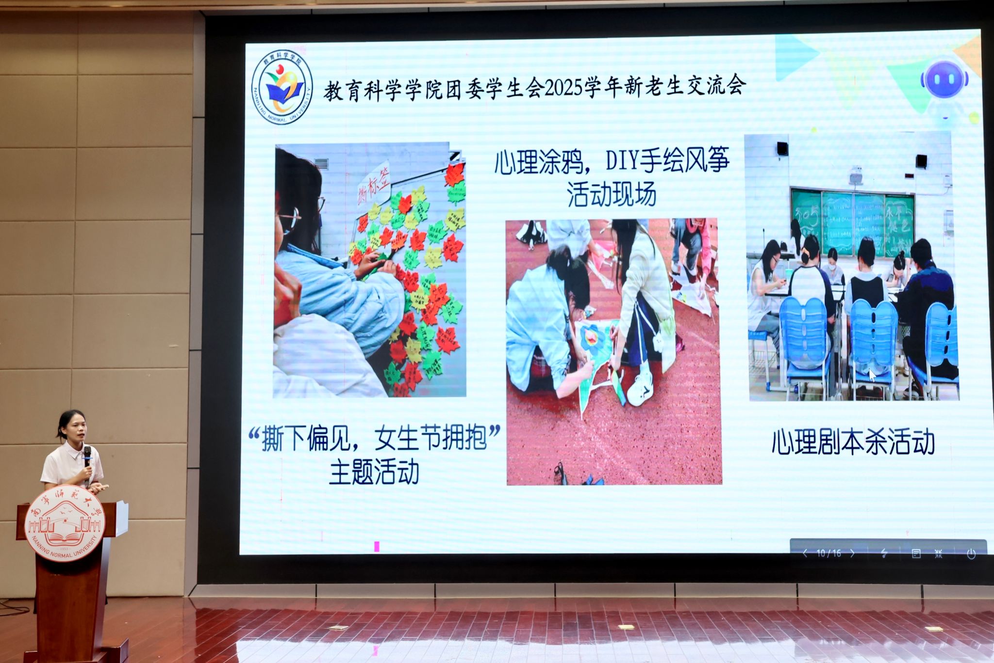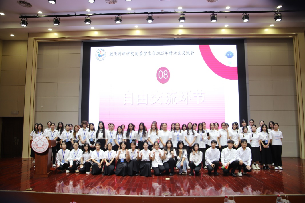 特色社团。团委副书记韦雨诗学姐代表全体团委学生会成员向2025级新生发出加入团学组织的邀请。交流会的最后环节是新老学生自由交流,团学的学姐学长们积极地和新生们进行交流。