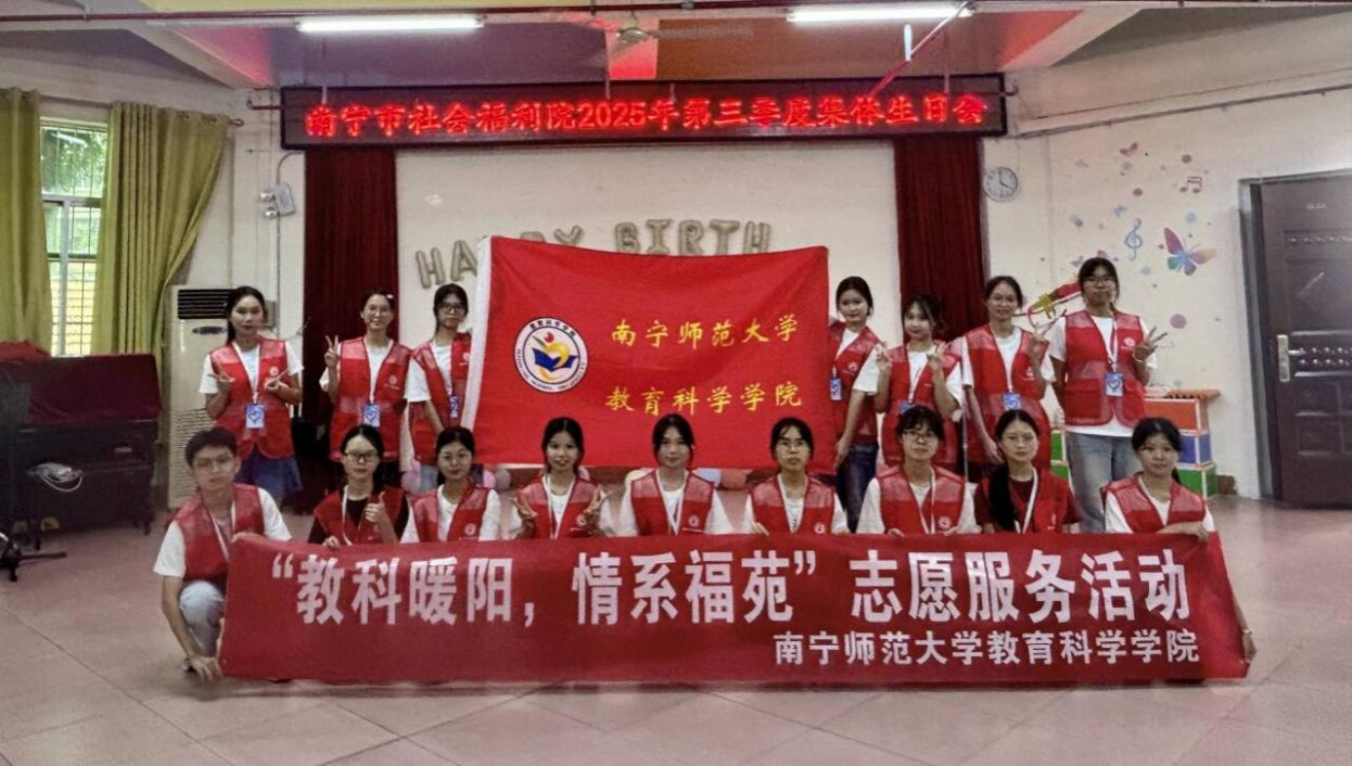 团委组织16名志愿者到南宁市社会福利院开展“教科暖阳,情系福苑”志愿服务活动,协助院方举办了第三季度集体生日会。