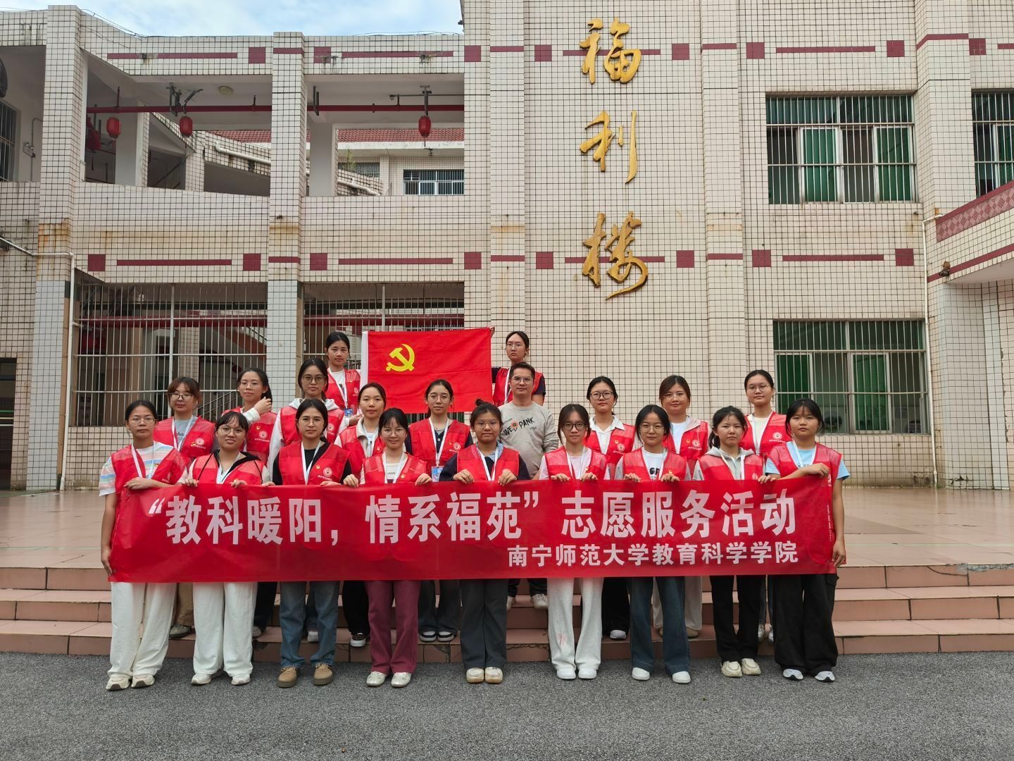 社团理事会及本科生第一党支部全体党员赴南宁市社会福利院开展“教科暖阳,情系福苑”志愿服务系列活动。