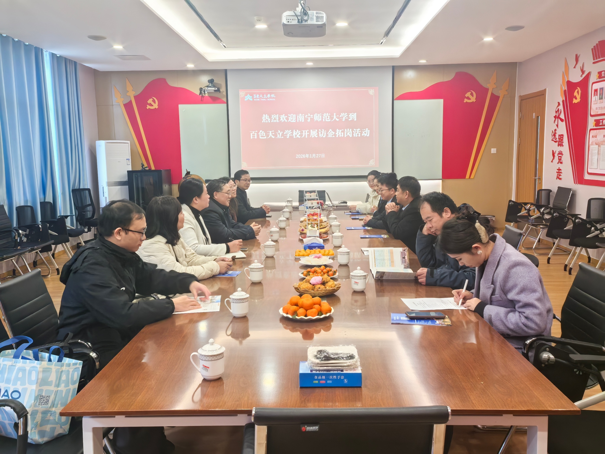 、马克思主义学院与国际教育学院一行 6 人,前往百色市开展访企拓岗和人才培养专题调研活动。调研组先后走访了多家学校、企业以及百色市教育局,围绕校校合作、校企合作和校地合作等方面展开了深入交流。