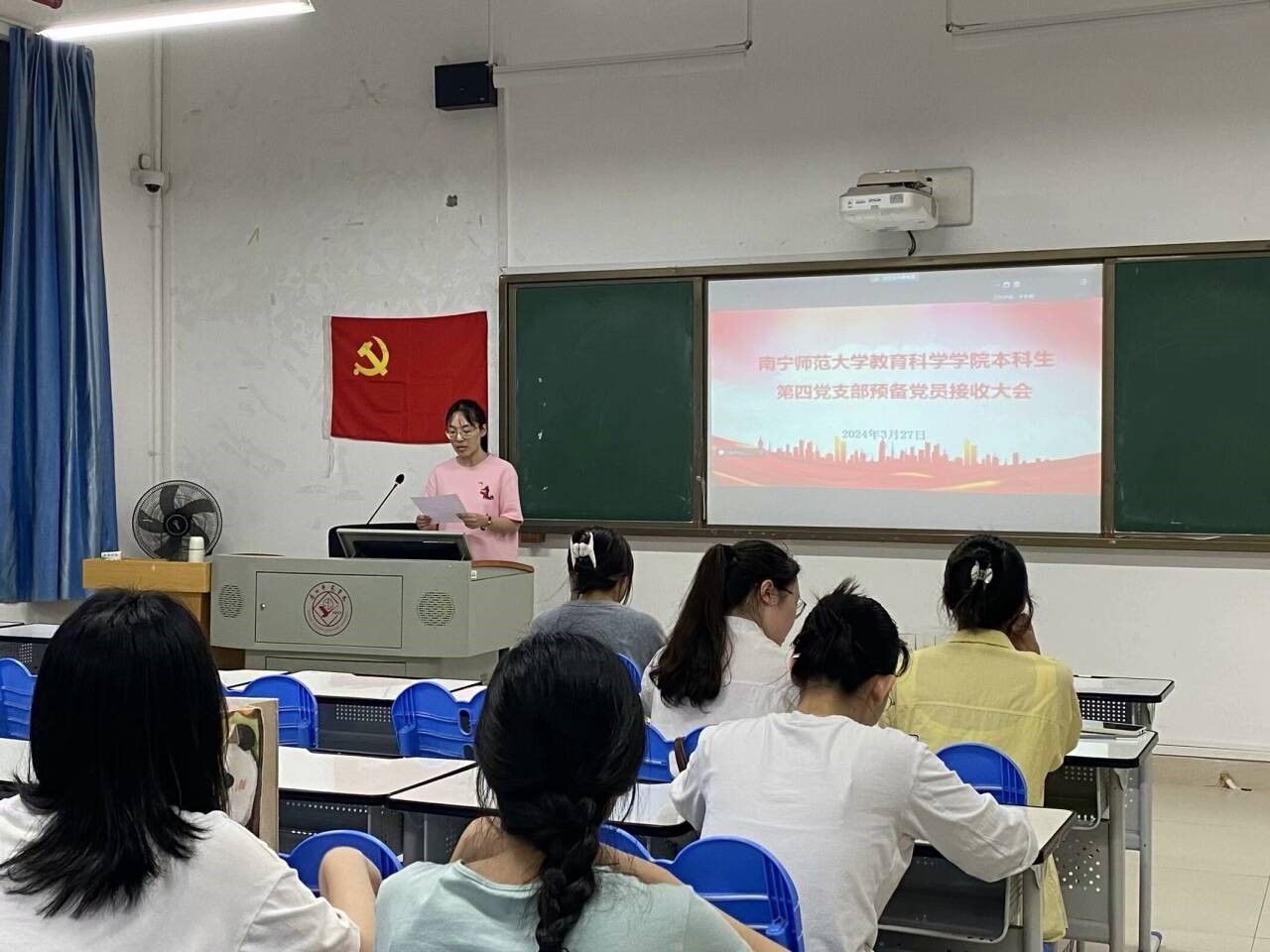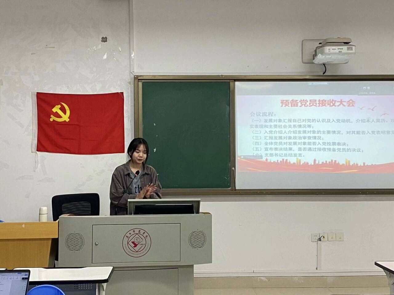 会议第一项议程:预备党员接收大会。此项议程是对支部发展对象黄宇琼等4名同志的入党事宜分别进行讨论和表决。在经过支部党员讨论后,全体党员投票通过黄宇琼等4名发展对象接收为预备党员的申请。在支部同志们的充分讨论下,4名同志被正式接收为预备党员,此项议程圆满结束,并希望他们今后不忘初心,牢记使命,早日成为正式党员。