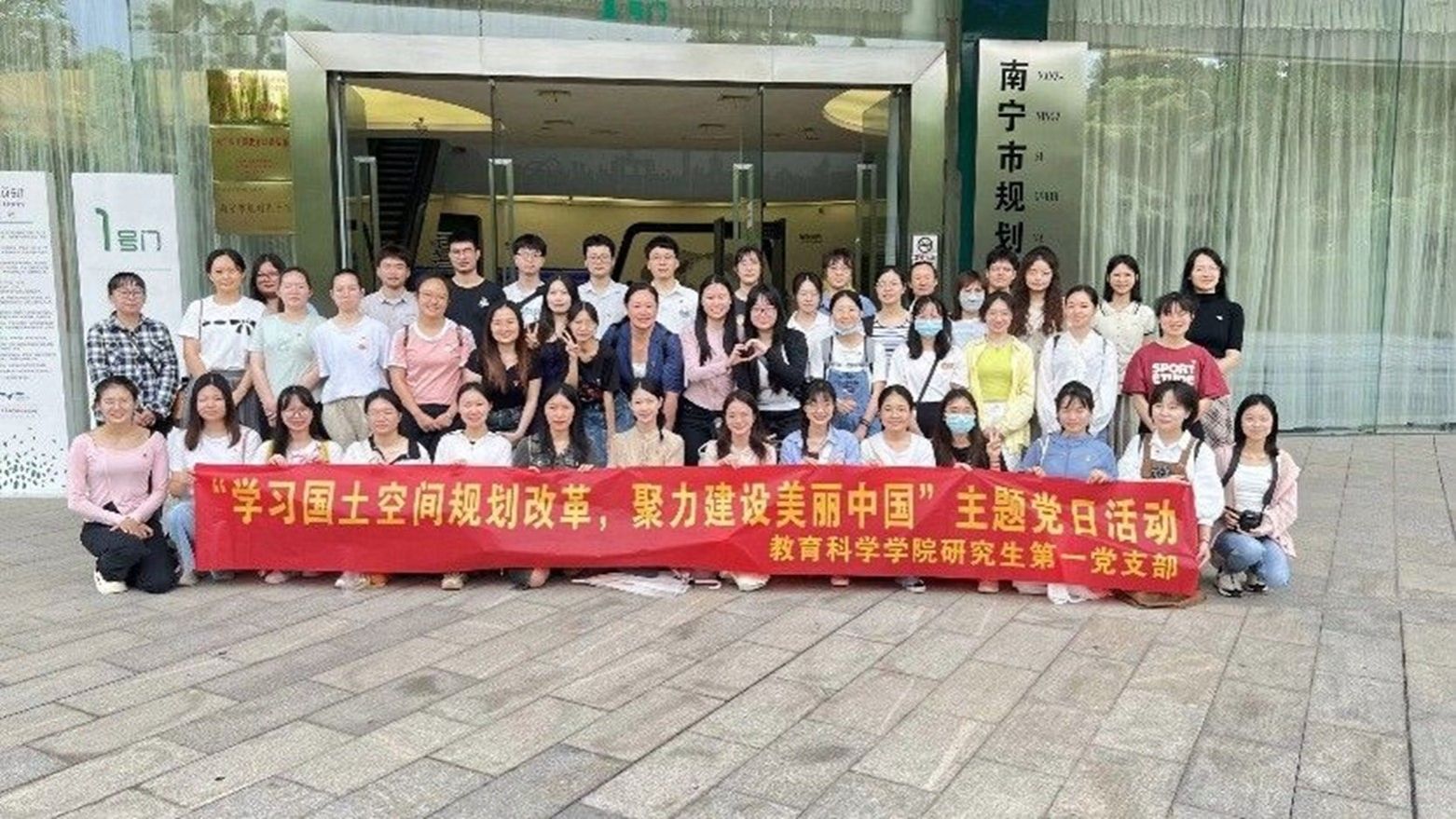 研究生第一党支部于5月10日开展“学习国土空间规划改革,聚力建设美丽中国”主题党日活动,赴南宁市城市规划展示馆和广西自然资源博物馆参观,支部党员和入党积极分子参加活动。
