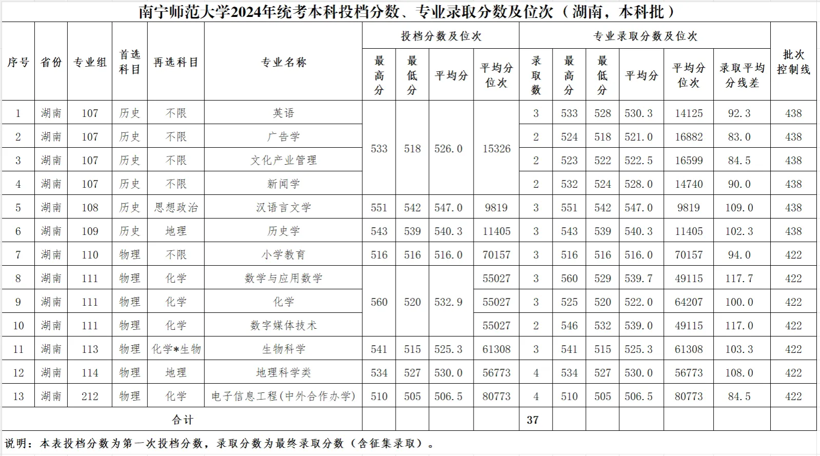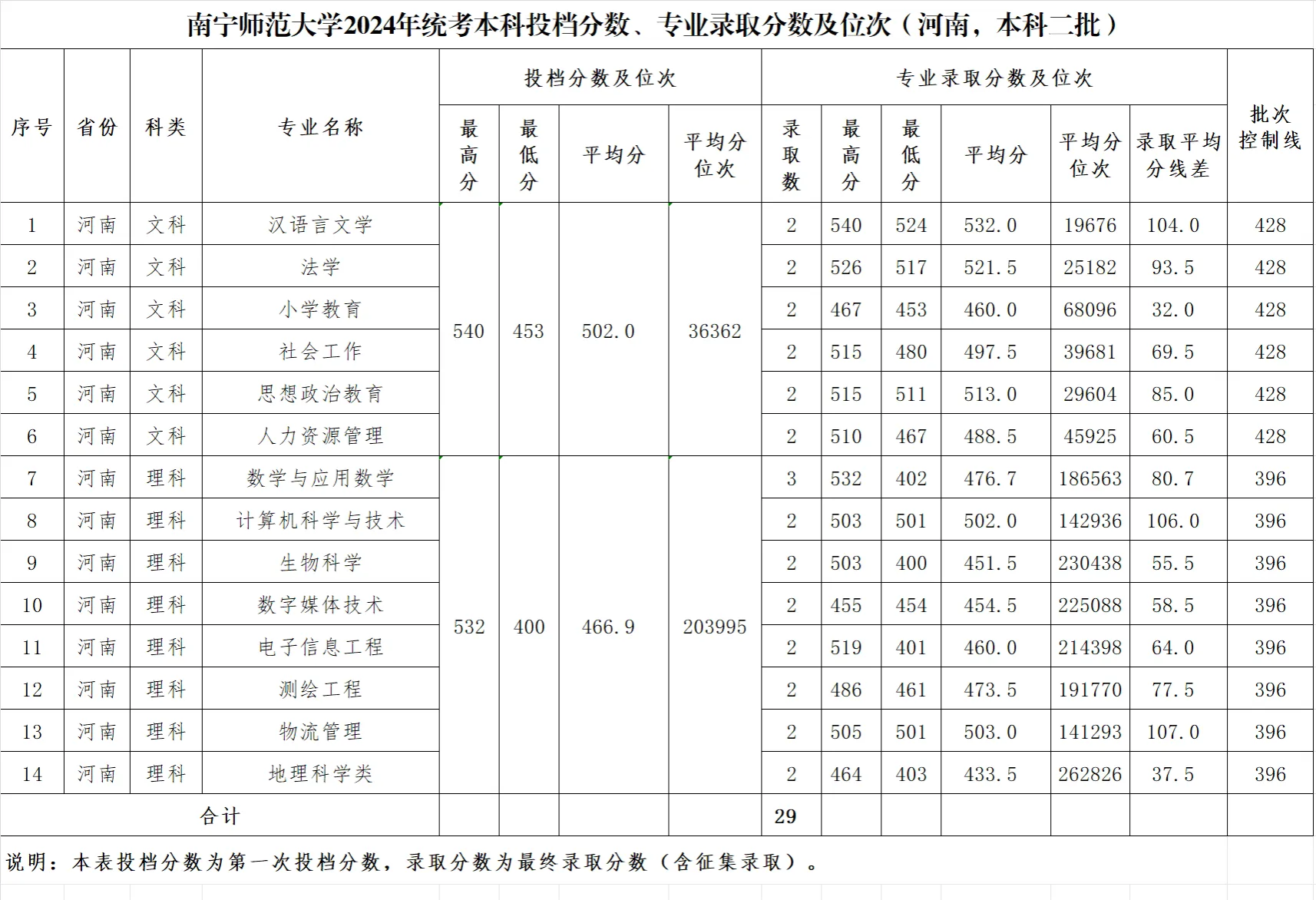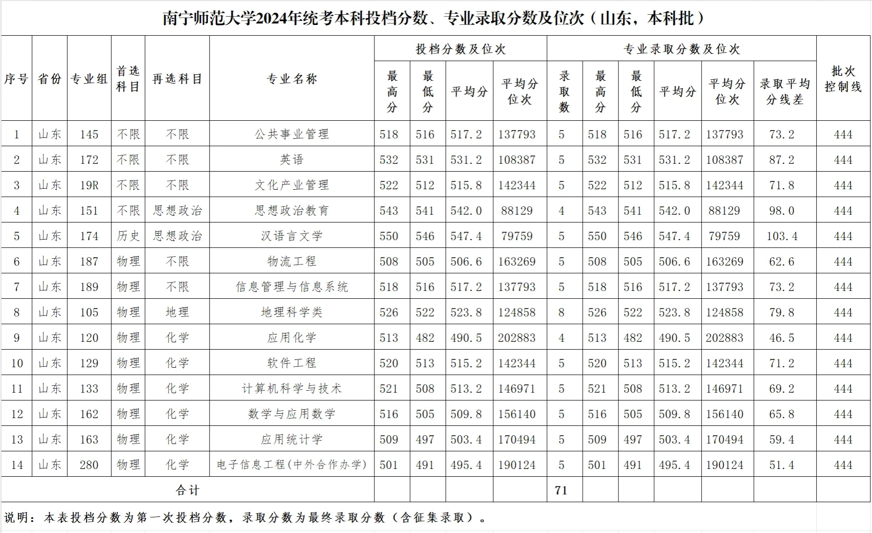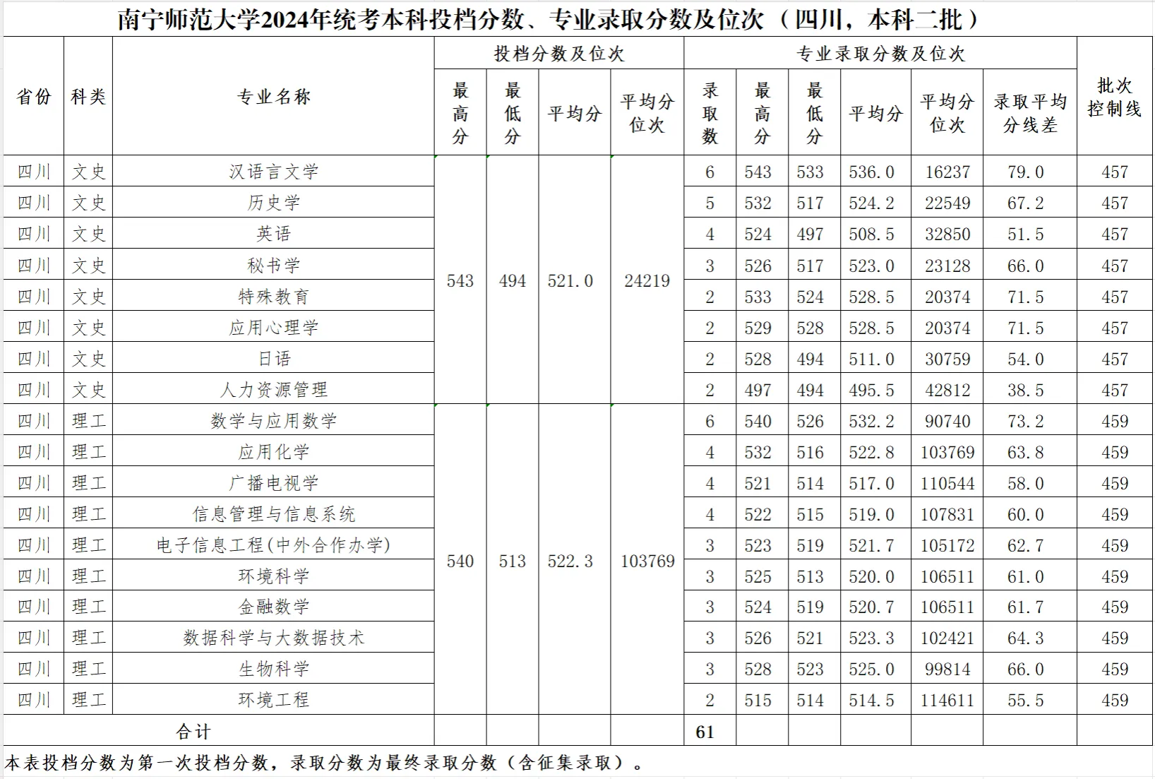 专业录取分数及位次等信息