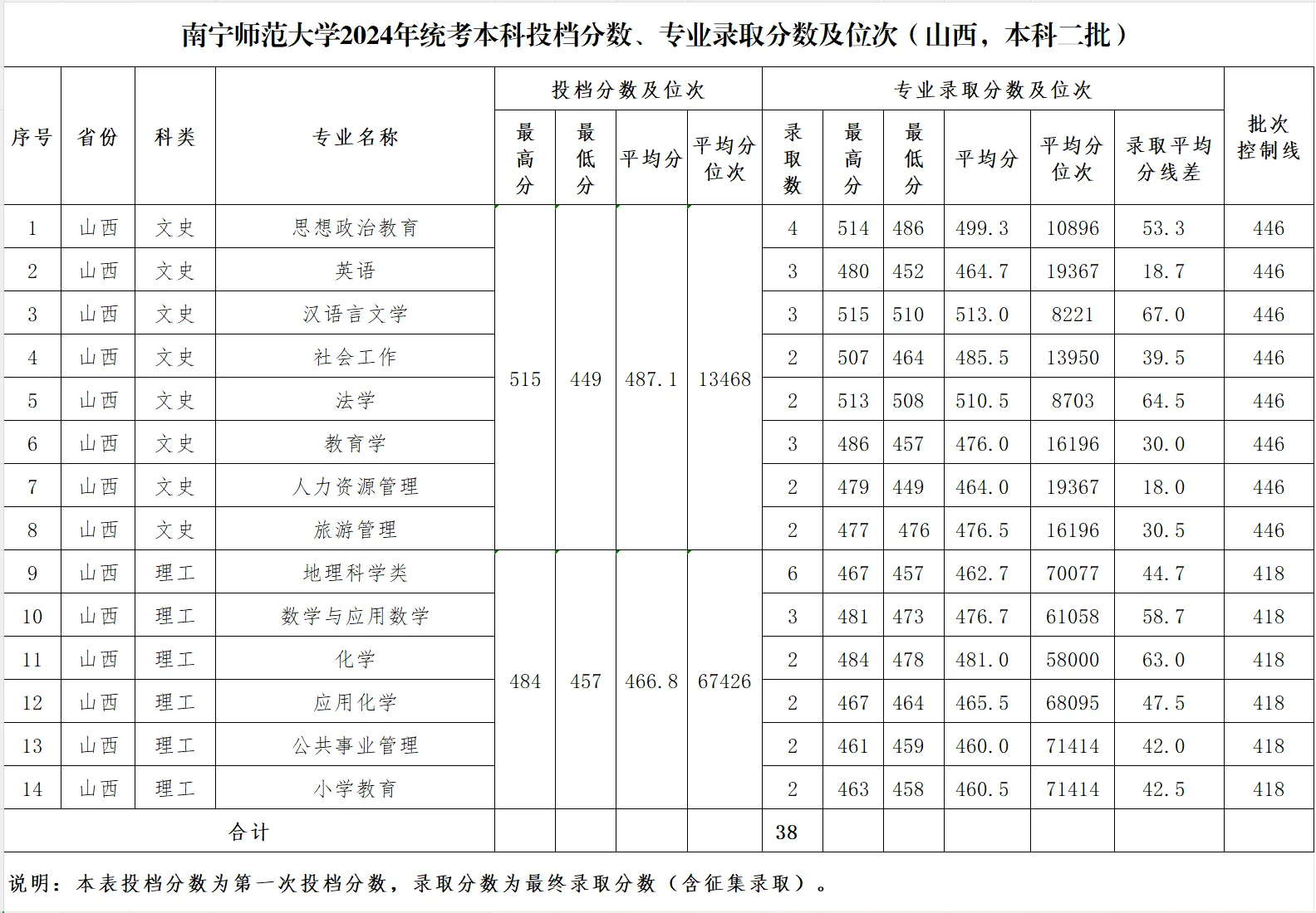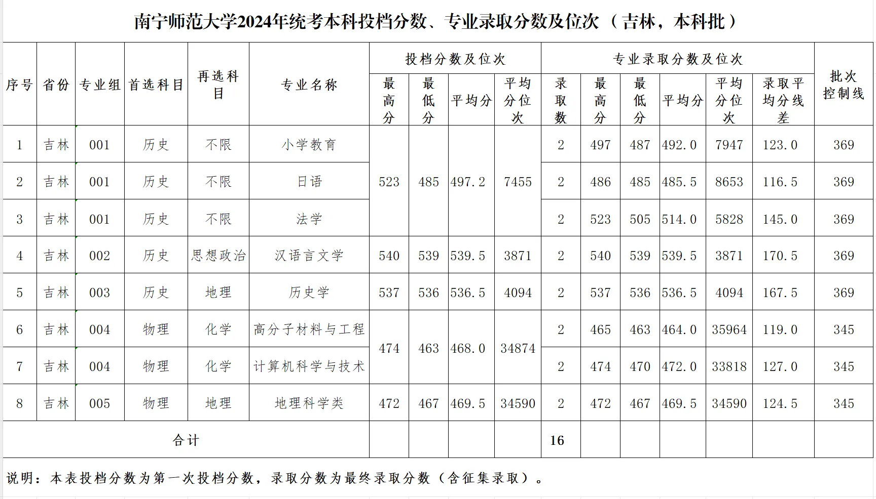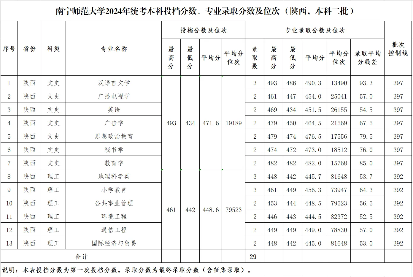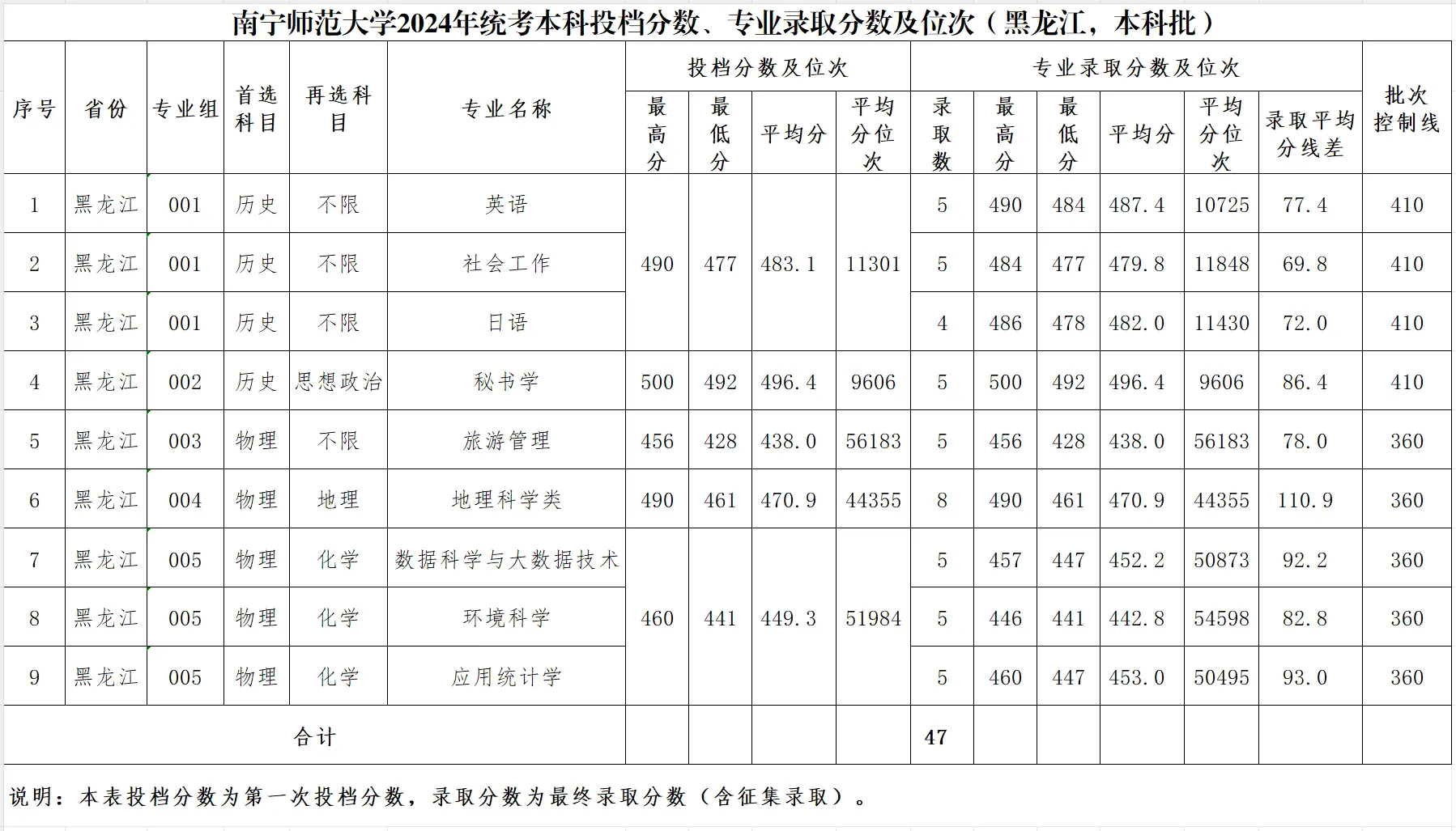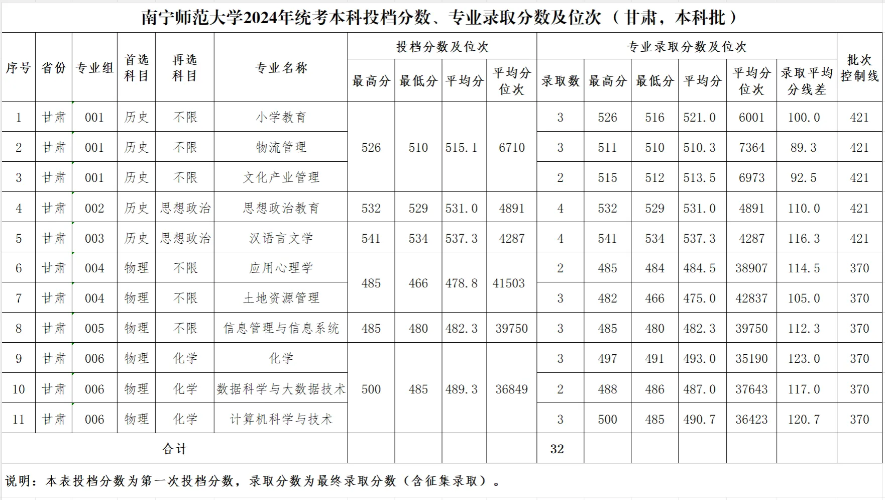专业录取分数及位次等信息