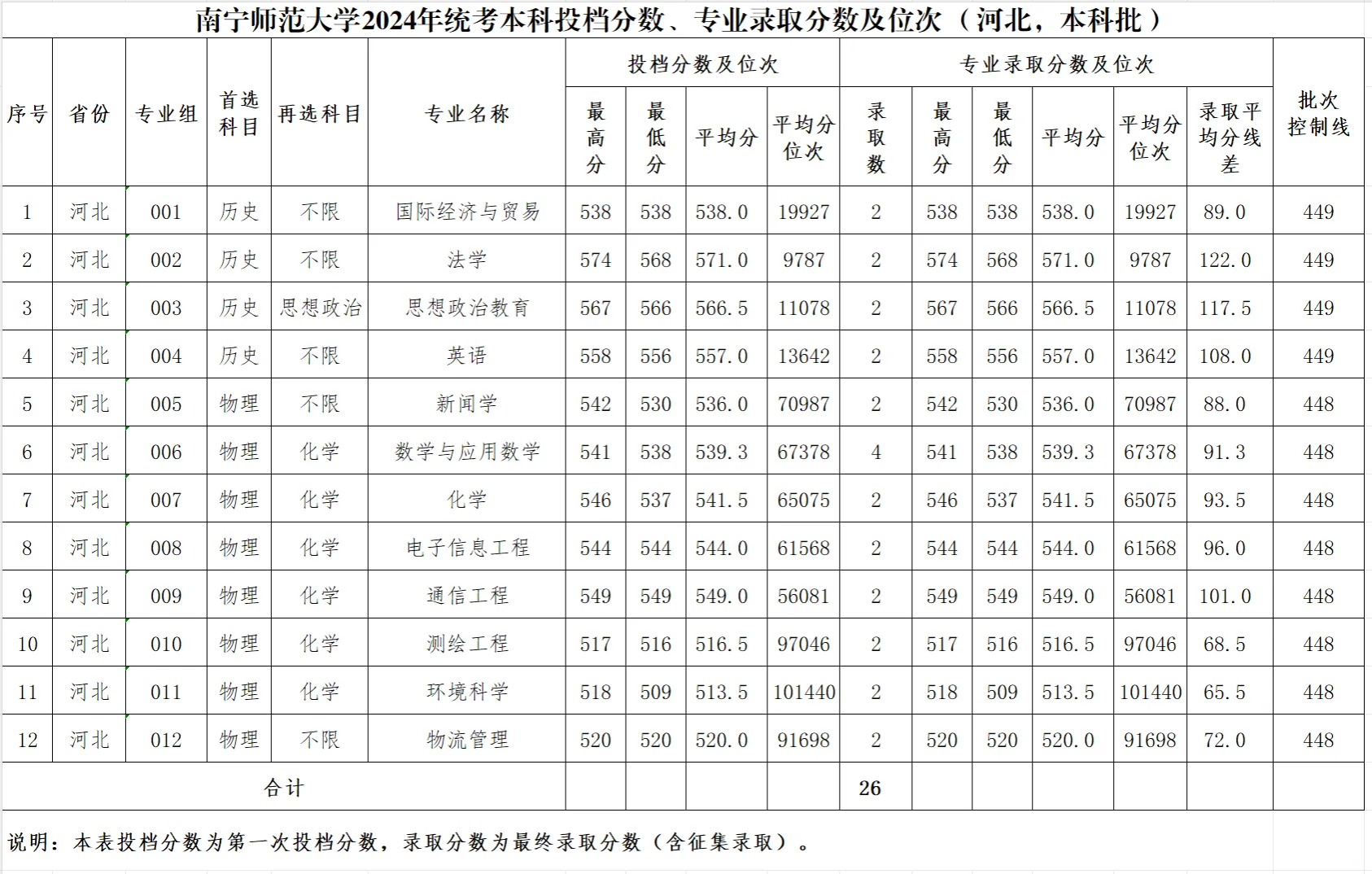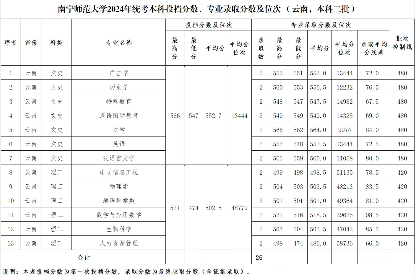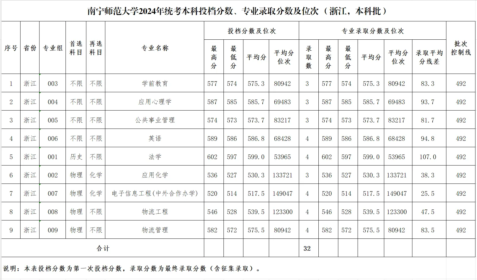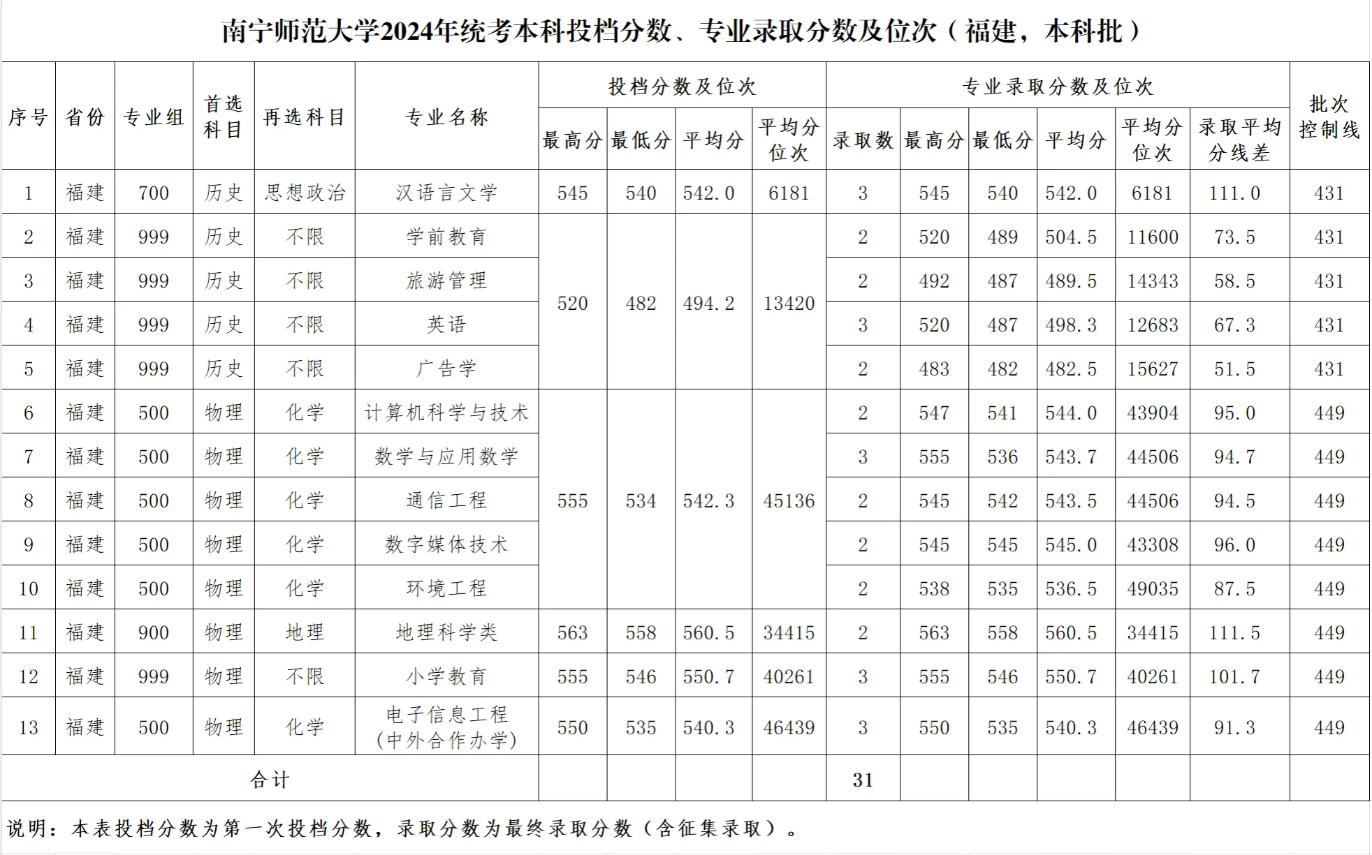 专业录取分数及位次等信息