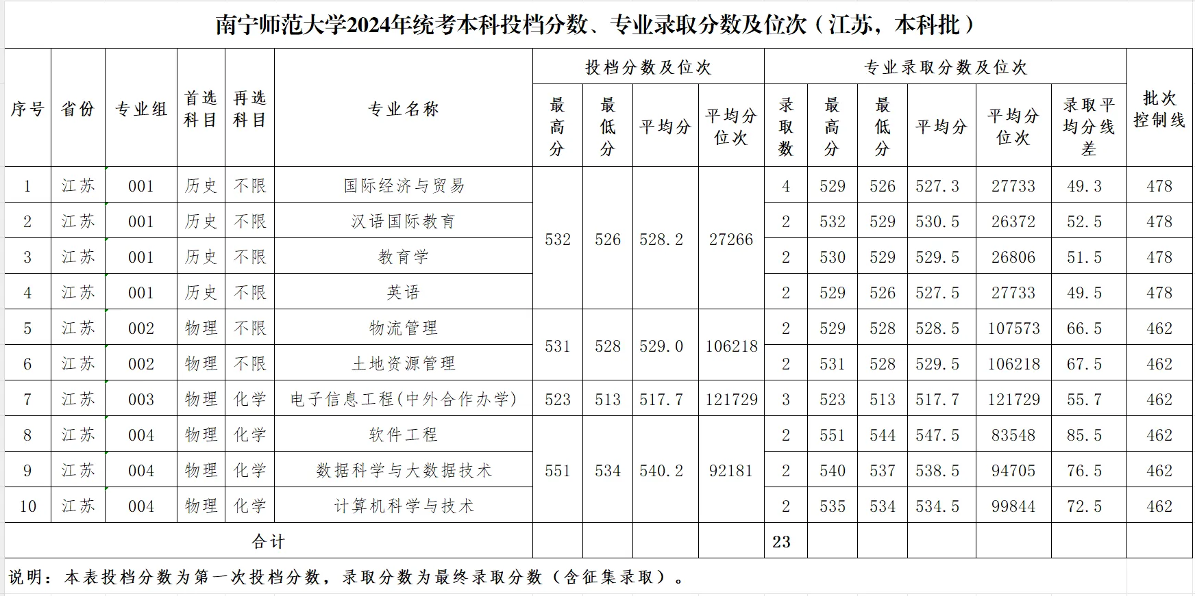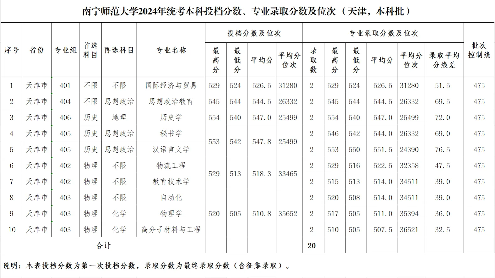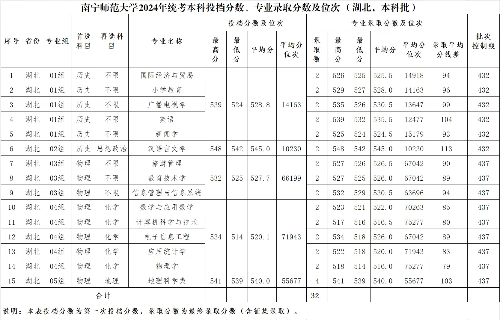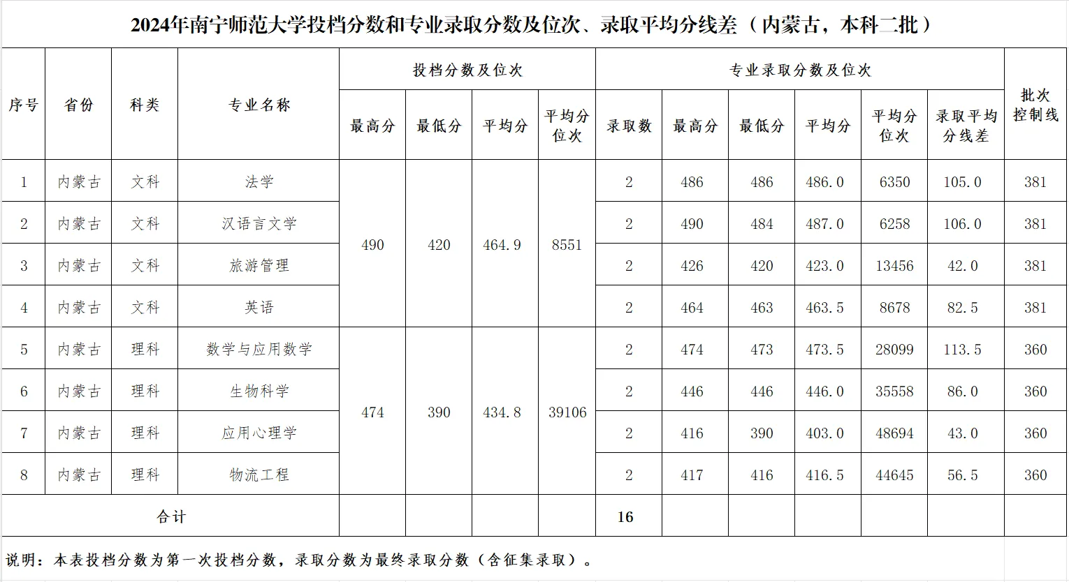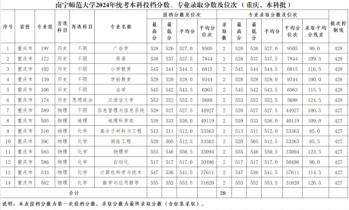 专业录取分数及位次等信息