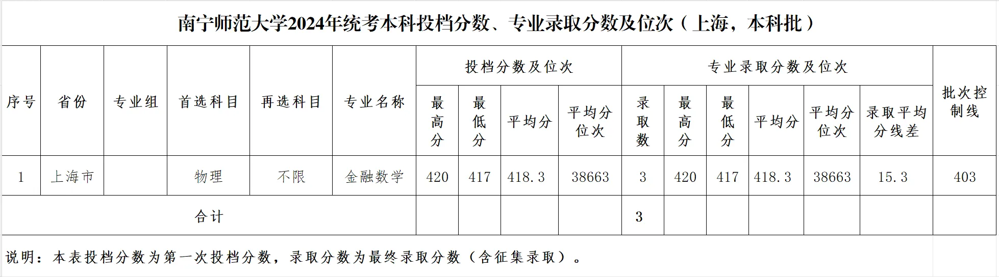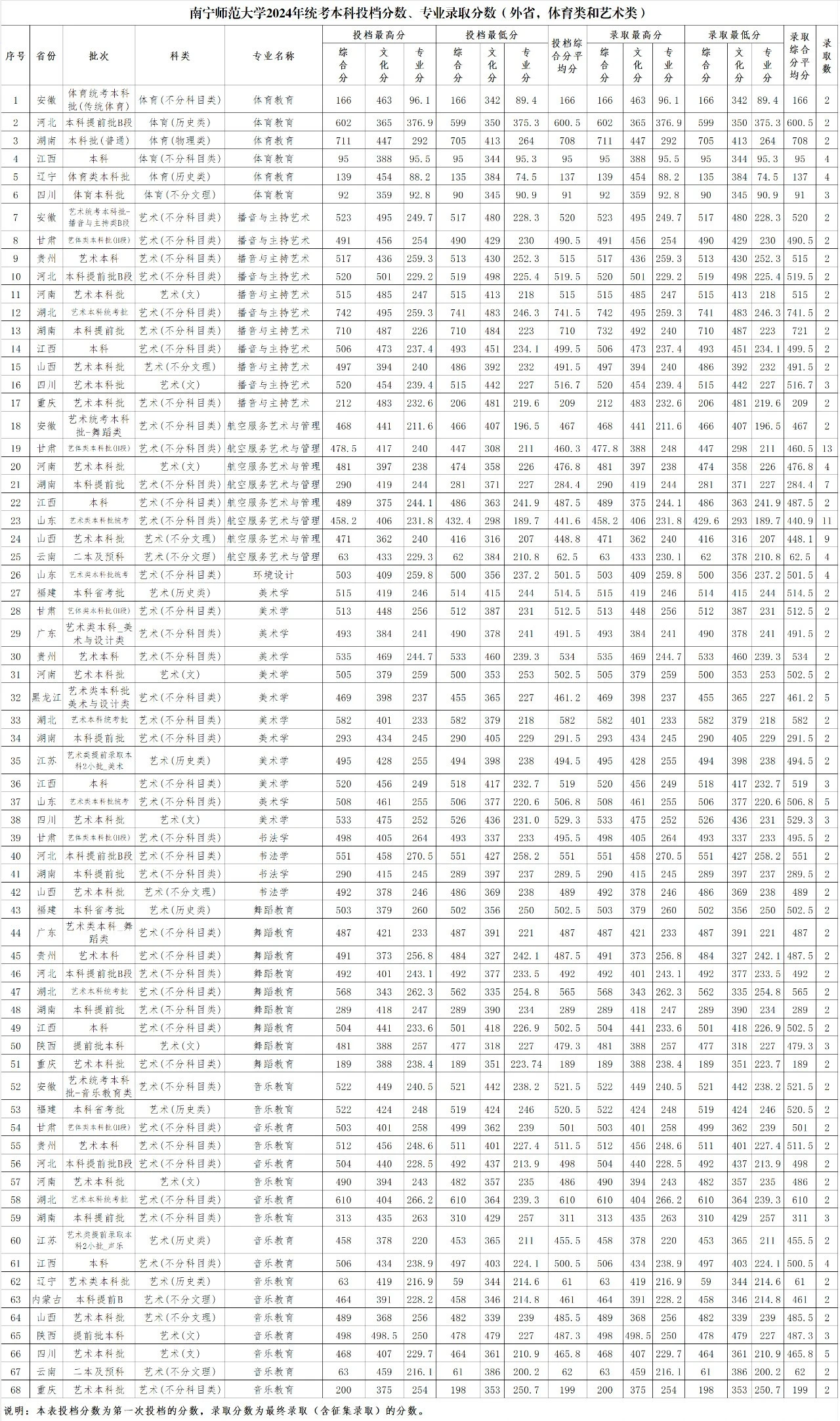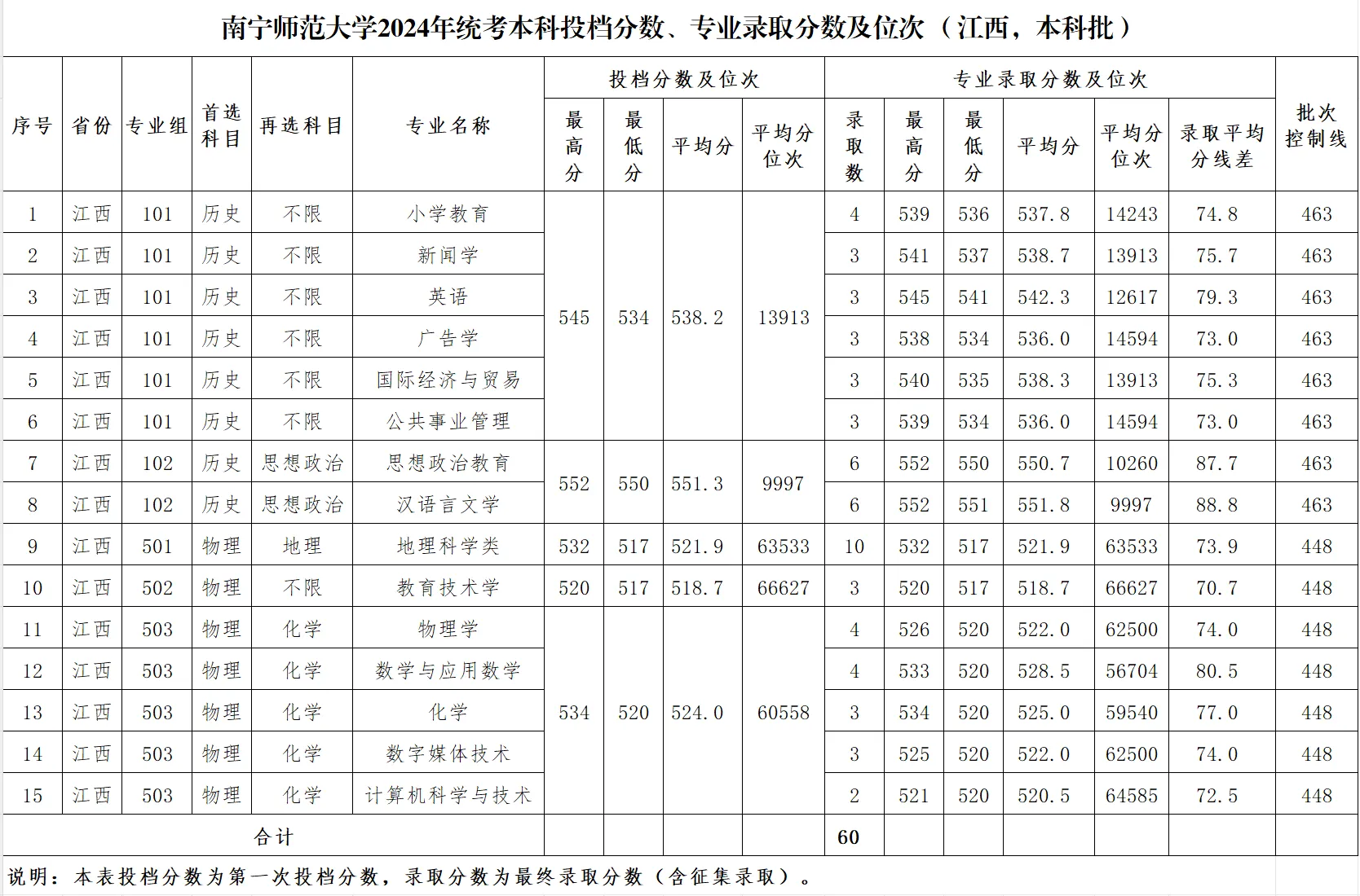 2024年统考本科投档分数